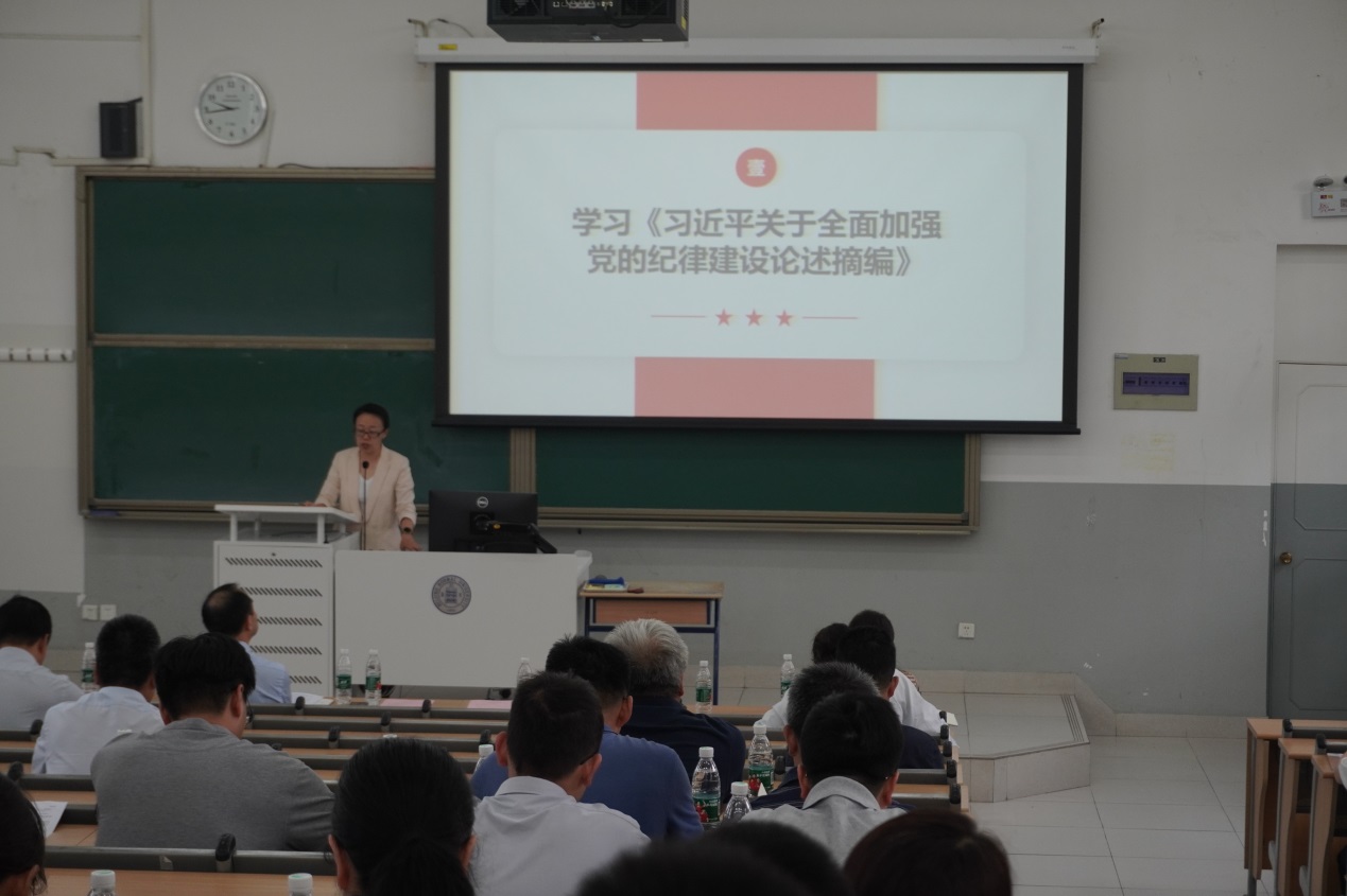 党委书记杨钊领学《习近平关于全面加强党的纪律建设论述摘编》。杨钊书记介绍《摘编》的主要内容以及党史中的纪律教育,指出纪律的基本功能在于教育、引导、警示、预防、惩戒、纠错,党的纪律是自律和他律相结合的实质。通过正面和负面两方面案例,强调纪律教育的重要性,要继续开展好下一阶段的党纪学习教育,警钟长鸣,戒尺高悬,做到心有敬畏、行有所止。